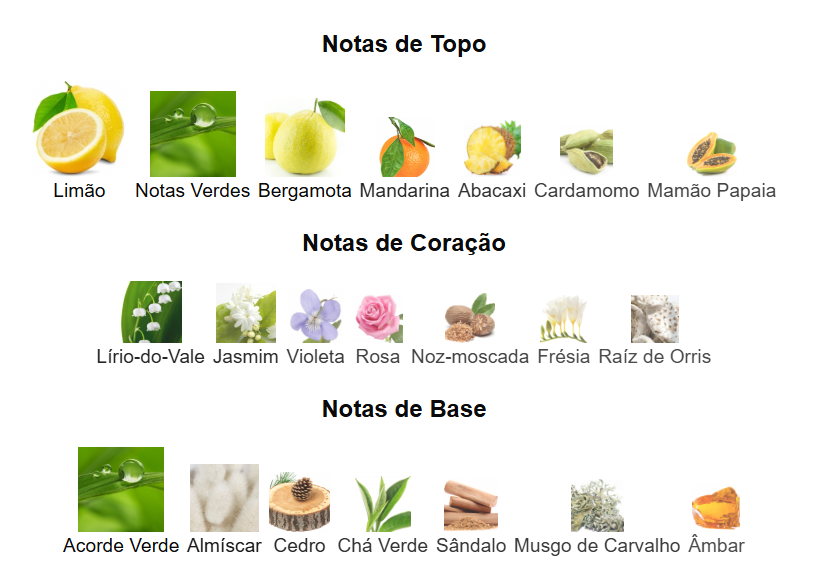 CK One de Calvin Klein é um perfume Cítrico Aromático Compartilhável. CK One foi lançado em 1994. CK One foi criado por Alberto Morillas e Harry Fremont. As notas de topo são: Limão, Notas Verdes, Bergamota, Mandarina, Abacaxi, Cardamomo e Mamão Papaia. As notas de coração são: Lírio-do-Vale, Jasmim, Violeta, Rosa, Noz-moscada, Frésia e Raíz de Orris. As notas de fundo são: Acorde Verde, Almíscar, Cedro, Chá Verde, Sândalo, Musgo de Carvalho e Âmbar.